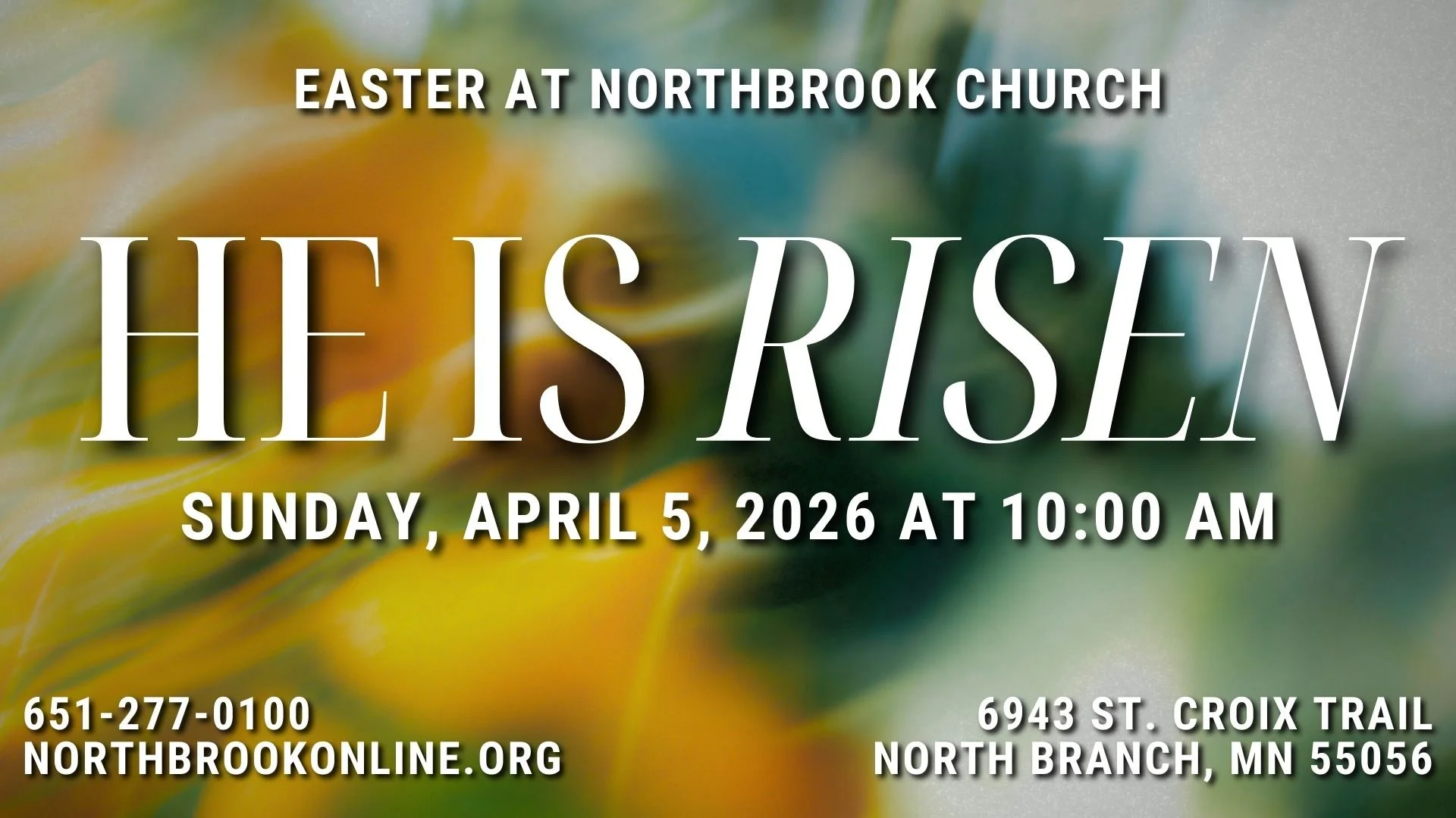 Easter Service Sunday, April 5, 2026 10:00 AM 11:30 AM NorthBrook Church 6943 Saint Croix Trail North Branch, MN, 55056 United States (map) Google Calendar ICS